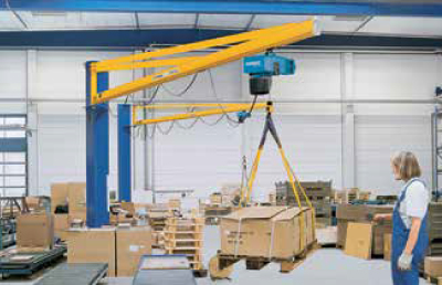El reducido peso permite girar la pluma con facilidad, y el uso del perfil hueco KBK, como viga de grúa, permite esfuerzos para el desplazamiento reducidos.