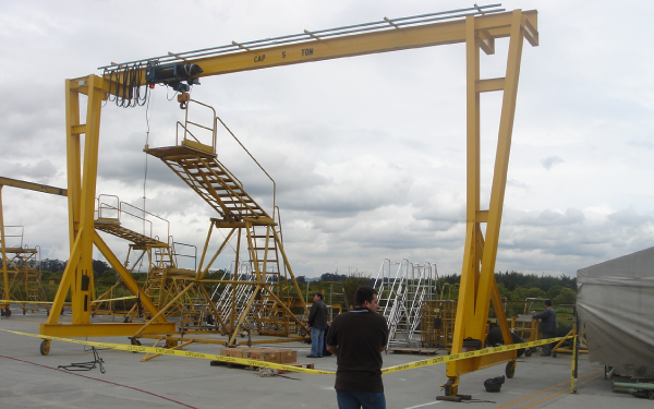 Suministramos instalaciones de grúas para el mantenimiento de aviones, con las cuales se puede reaccionar flexiblemente a los requisitos cambiantes, desde la grúa de una viga (p. ej. para el montaje de los grupos motores) hasta los sistemas de grúas con plataformas de mantenimiento telescópicas y carros de carga. También en este caso, nuestras grúas suspendidas son la primera opción, porque abarcan, incluso estando suspendidas varias veces, las zonas de mantenimiento de un hangar con luces de 90 metros y más. Y como estas grúas son enclavables entre sí, se pueden trasladar las plataformas de mantenimiento y carros de carga desde de una zona de la nave hasta la siguiente.